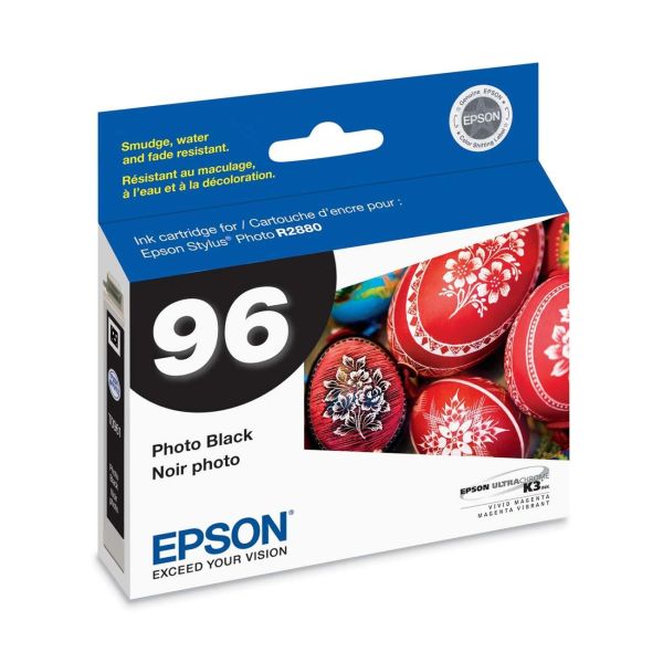 The Genuine (OEM) Genuine Epson T096120 Ultrachrome K3 PHOTO Black Ink Cartridge is designed to produce consistent, sharp output from your Epson printer (see full compatibility below). The original name brand Epson 96 T096120 Ink Cartridge is engineered and manufactured by Epson and warrantied by the manufacturer. All orders over $49 qualify for Free Shipping!