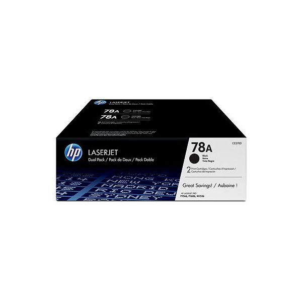 The Genuine (OEM) Genuine HP 78A (CE278D) Black Laser Toner Cartridge 2-Pack of CE278A is designed to produce consistent, sharp output from your HP printer (see full compatibility below). The original name brand HP 78A CE278D Laser Toner Cartridge is engineered and manufactured by HP and warrantied by the manufacturer.