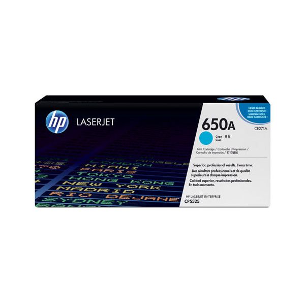 The Genuine (OEM) Genuine HP 650A (CE271A) Cyan Toner Cartridge is designed to produce consistent, sharp output from your HP printer (see full compatibility below). The original name brand HP 650A CE271A Laser Toner Cartridge is engineered and manufactured by HP and warrantied by the manufacturer.